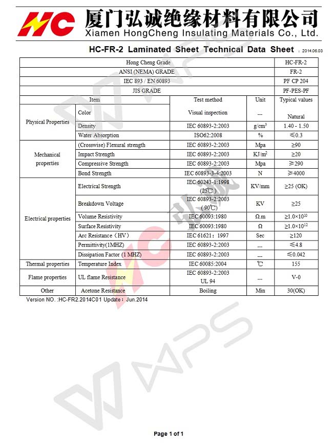FR2 (Inflaming retarding bakelite plate) also called phenolic laminated sheet,it is composed of bleaching insulating paper made from pulp impregnated with phenolic resin and added the corresponding flame retardants ,it is a rigid plate-like insulating material and laminated under high press.